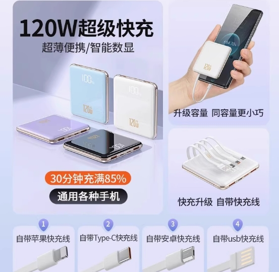 120W快充充电宝20000毫安大容量超薄小巧