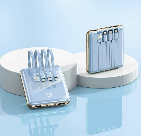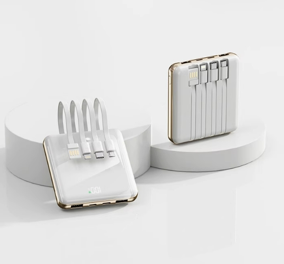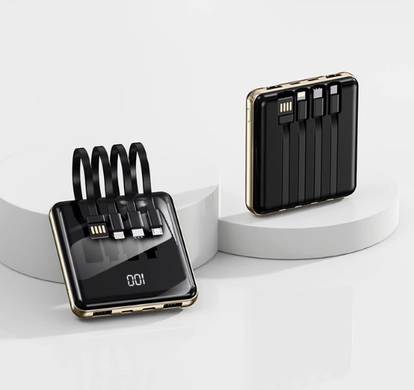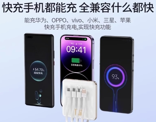功能自带数据线,多U口输出,双向快充,多电压,自带屏幕显示