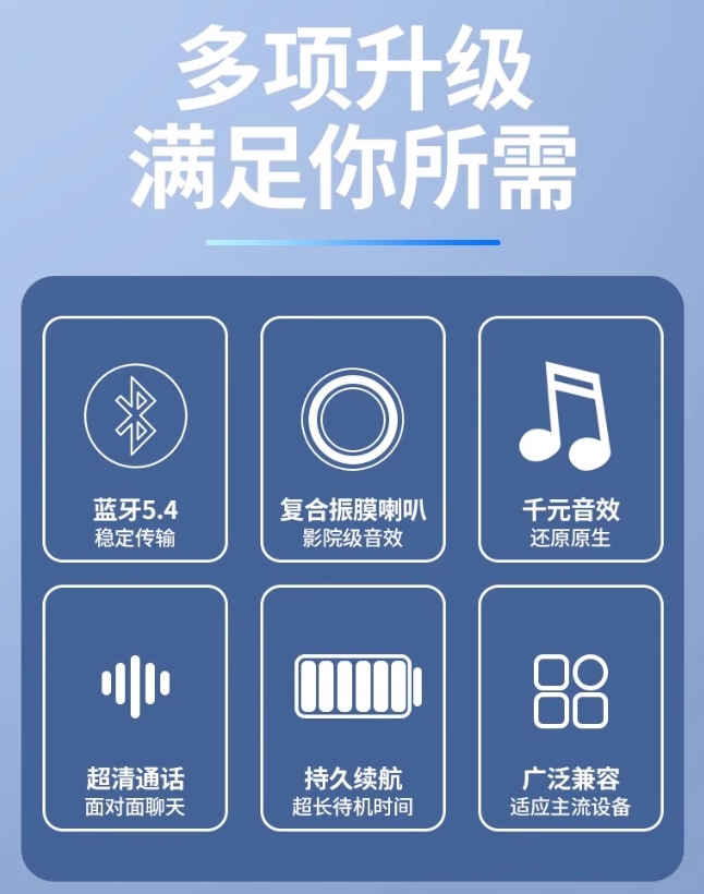 功能:降噪功能,支持配对,通话功能,无感佩戴,超长续航