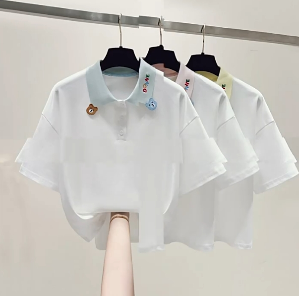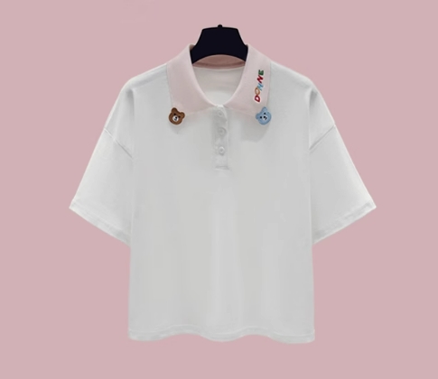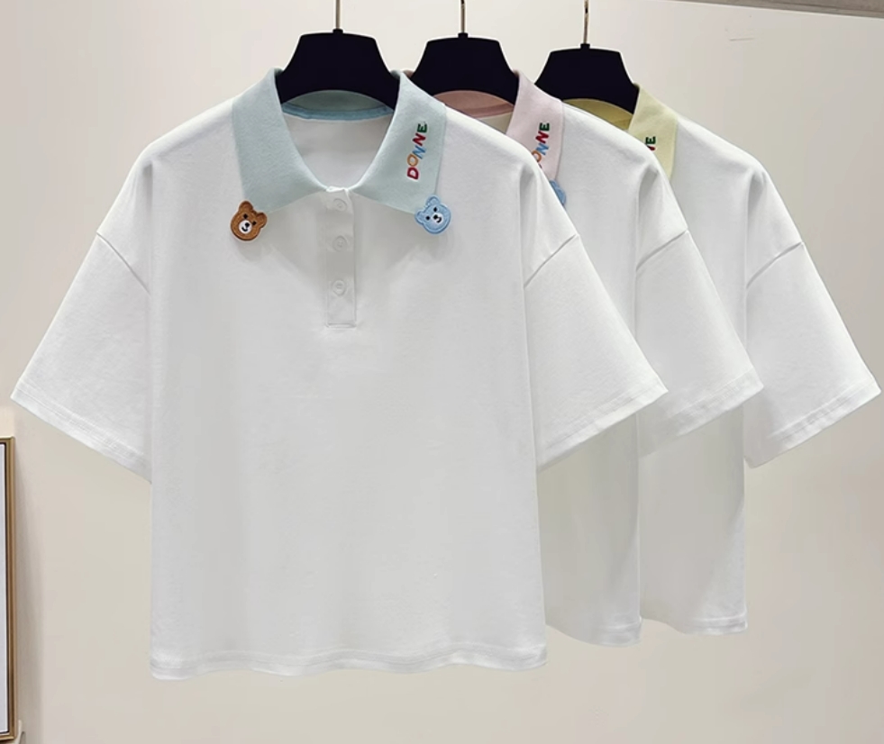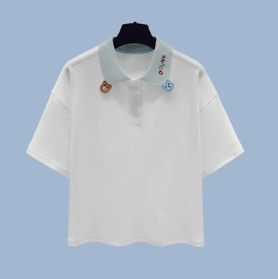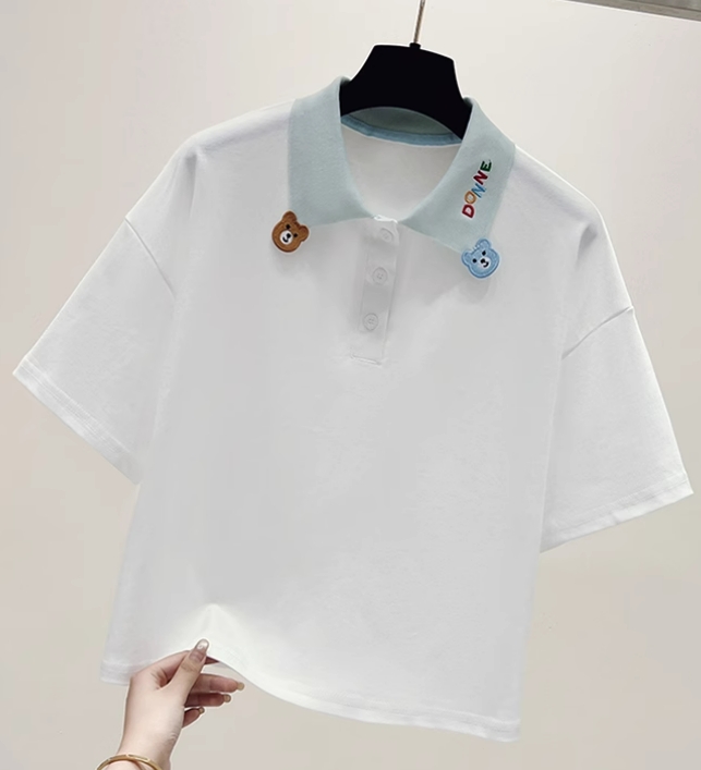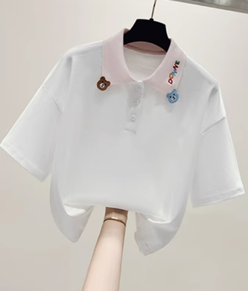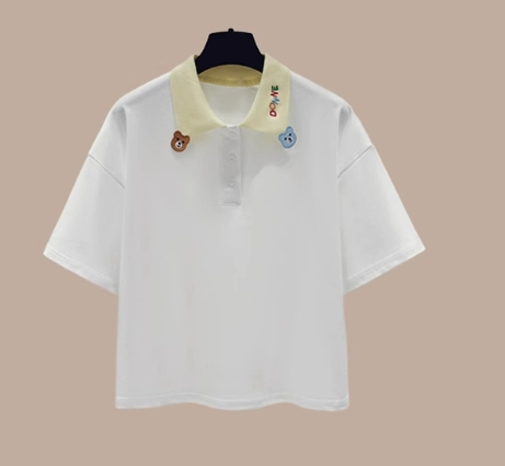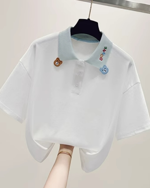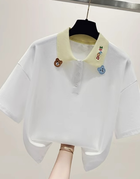 款百搭宽松学院风POLO领短袖T恤