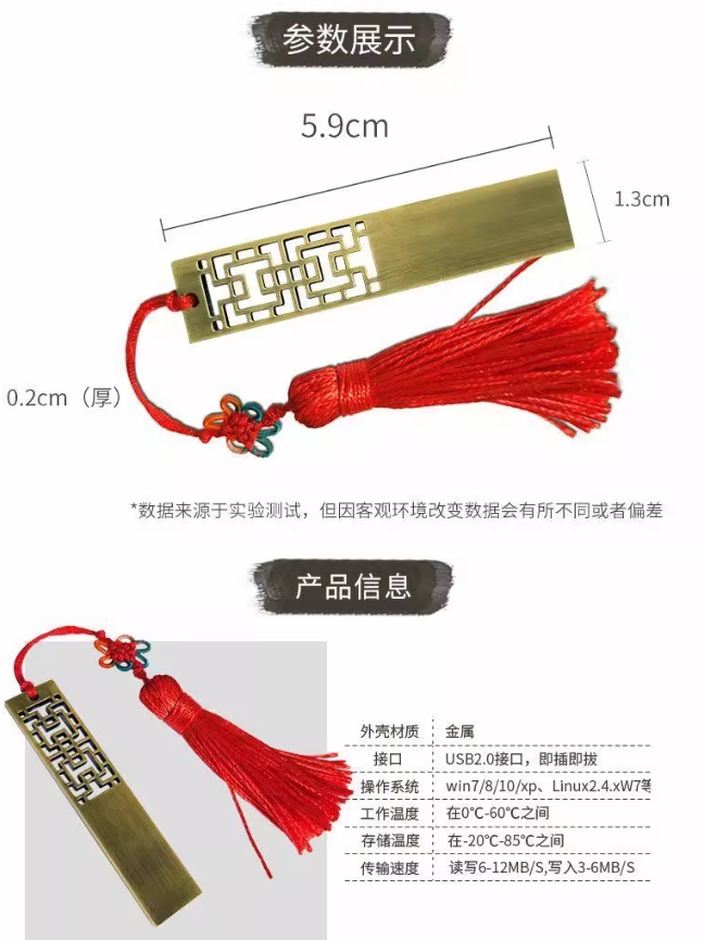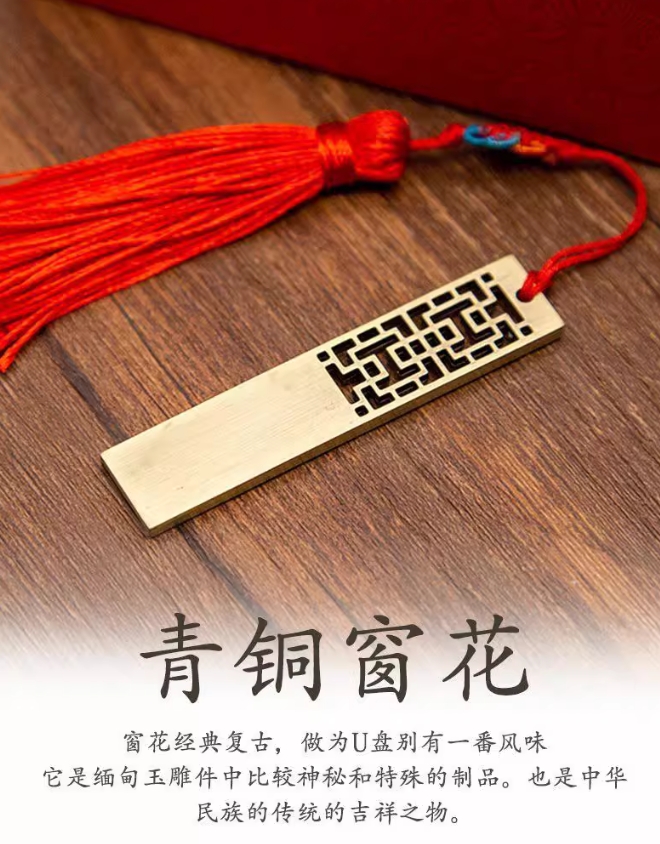 商务礼品定制U盘创意铜窗花定做LOGO金属刻字书签礼盒优盘